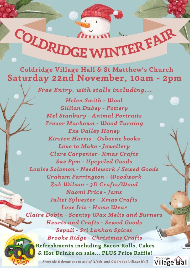 If you’re looking for unique gift ideas for family and friends ahead of the festive season then save the date and join our local artists, crafters and makers as we host the 2025 Coldridge Winter Fair at Coldridge Village Hall & St Matthew’s Church on Saturday 22nd November, between 10am and 2pm.