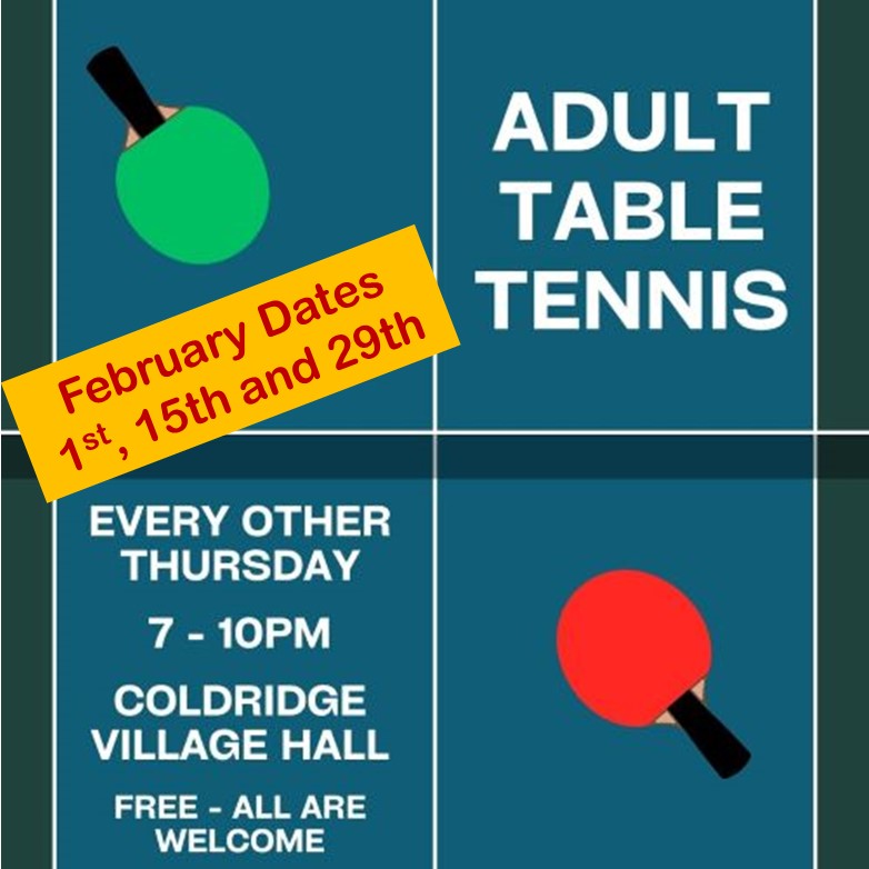 Thursday night is Table Tennis Night, our fortnightly sports social in the Village Hall, with 3 sessions now in the calendar for February 2024!