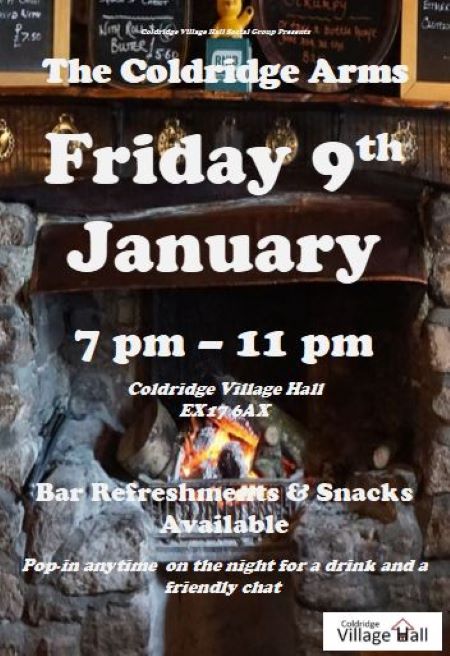Welcome to 2026!! ‘The Coldridge Arms’ will be opening its doors again on Friday 9th January at 7pm, and as ever all are welcome to drop by and join-us on the night to savour something from our licenced bar (either alcoholic or non-alchoholic) accompanied by some bar snack favourites and/or ice creams!