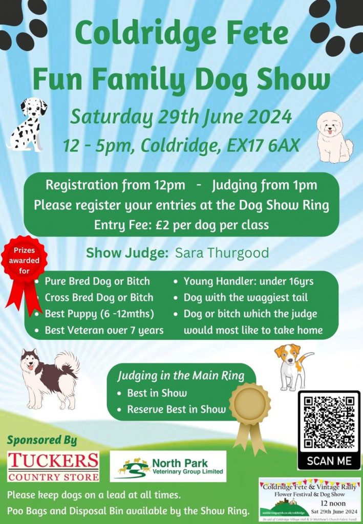 Whether you have a pedigree Pomeranian or a cheeky Cockerpoo, there’s a class for you at the Coldridge Fete Fun Family Dog Show. Details of the Dog Show are summarised in the poster below and/or can be gleaned from the Dog Show page on the Coldridge Parish Website.