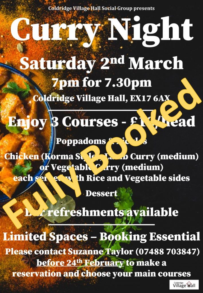 Please find below details of our Curry Night evening meal event in the Village Hall.