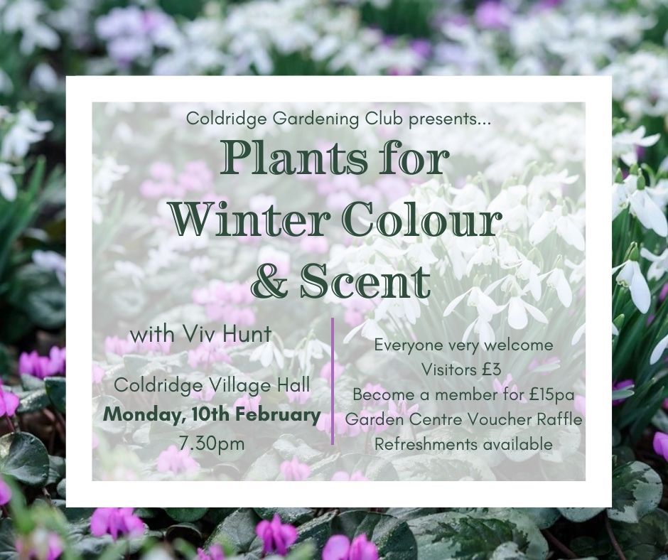 Our next regular Gardening Club meeting will feature a special talk entitled “Winter Colour & Scented Plants” delivered by our very own Viv Hunt.
