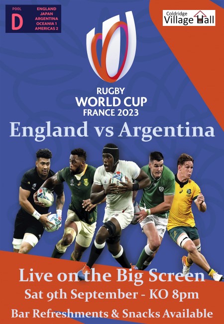 RWC 2023 – England vs Argentina Live-Screening Home / Events / This event has ended Date September 9, 2023 Time 7:30 pm Coldridge Village Hall The Square Coldridge CREDITON Devon EX17 6AX