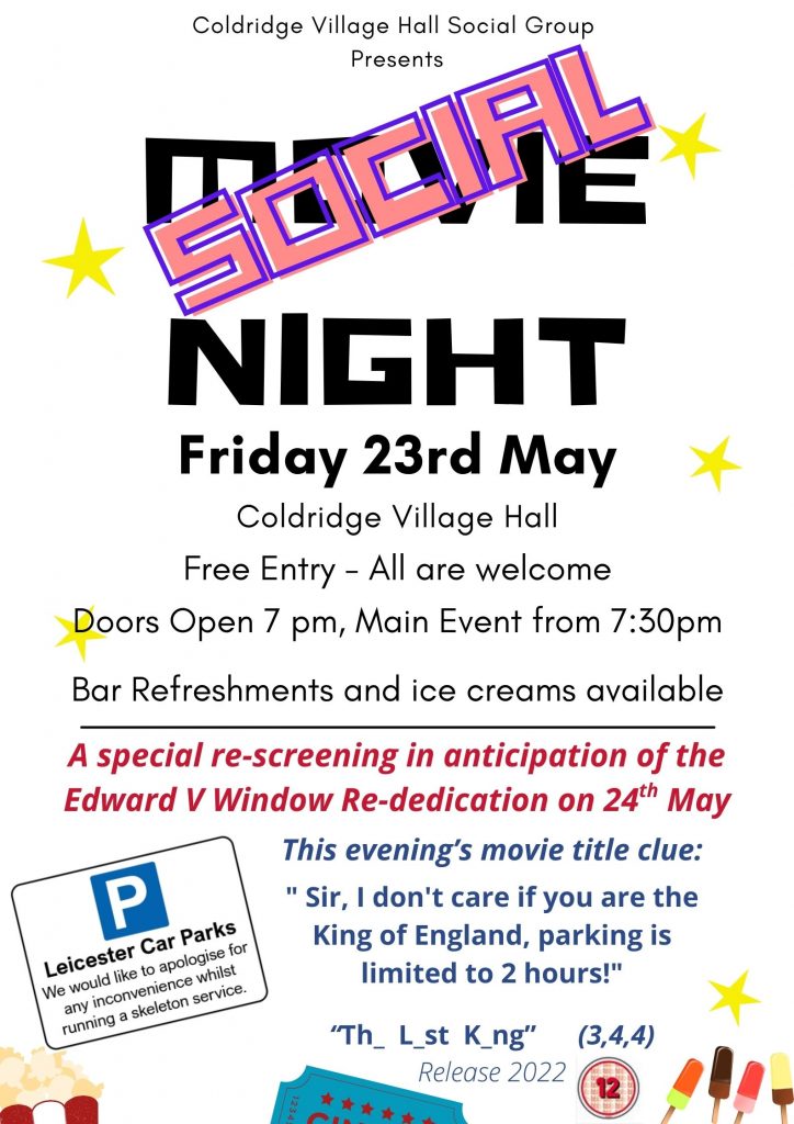 Join us in the Village Hall on Friday evening 23rd May as we host a special Coldridge Social Night (with a film) in anticipation of the Edward V Window Rededication event in St. Matthew’s Coldridge on Saturday 24th May.