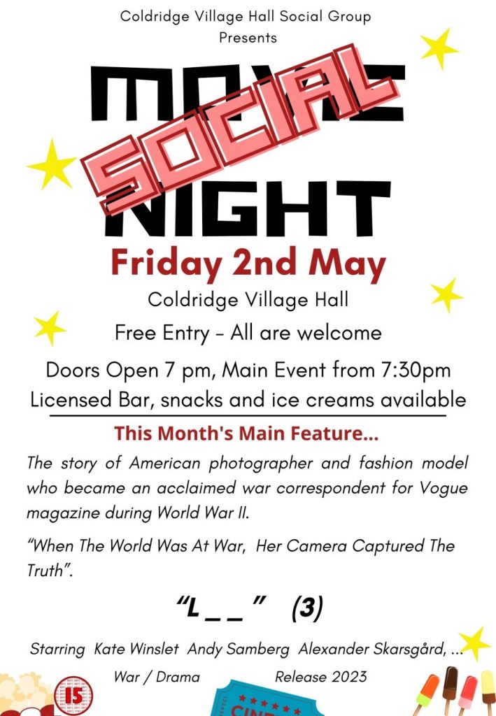 Join us in the Village Hall on Friday evening 2nd May for our next Coldridge Social Night (with a film).