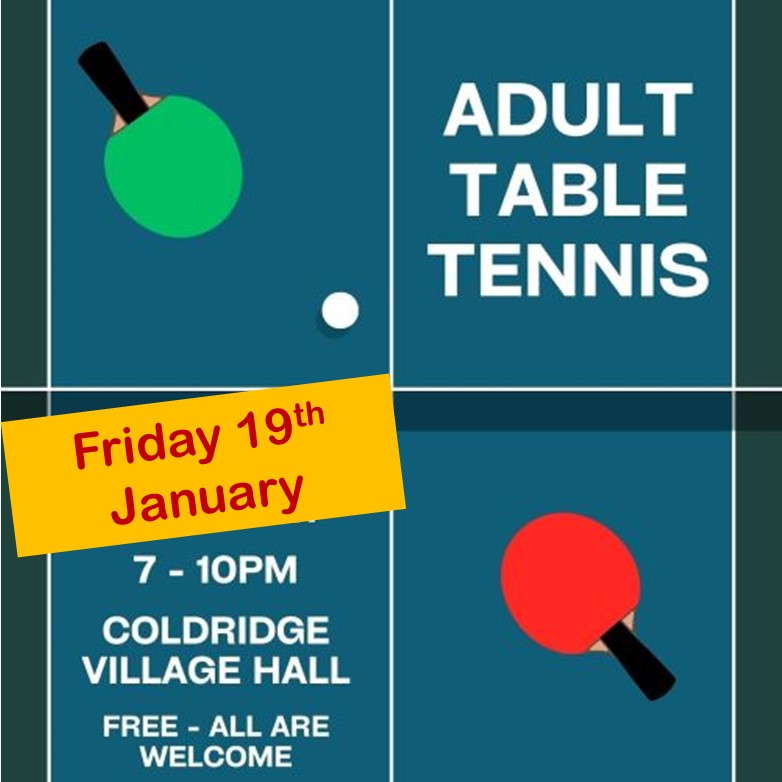 Open between 7 & 10pm, entry is free and all are welcome to join-in. No previous skills or expertise required, all the kit is supplied and bar refreshments will be available. If you’re new to Coldridge why not come up to the Hall and meet the regulars.