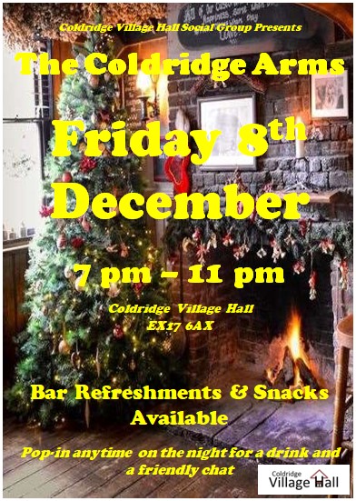 ‘The Coldridge Arms’ will be opening its doors again on Friday 8th December from 7pm. As ever all are welcome to join-us on the night.